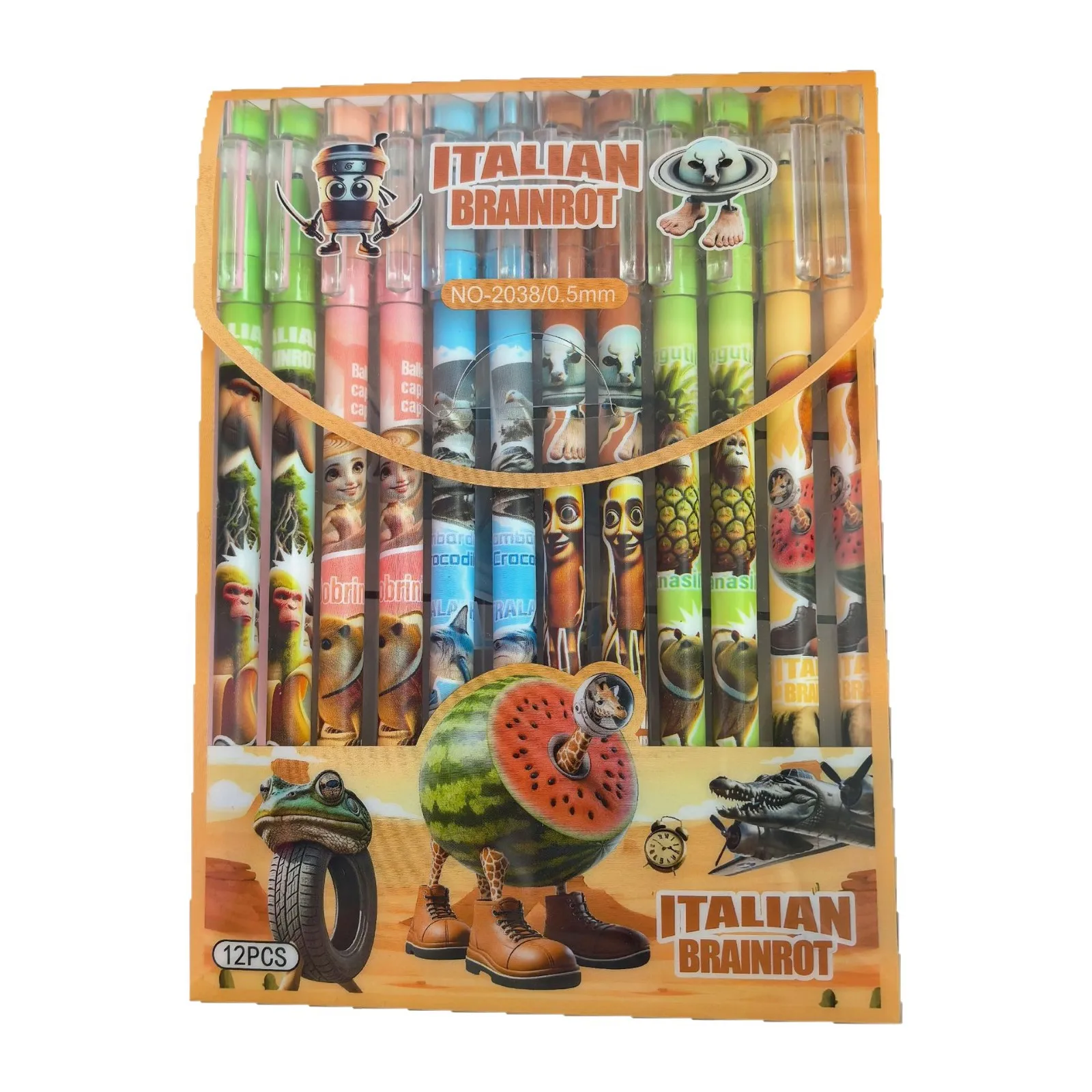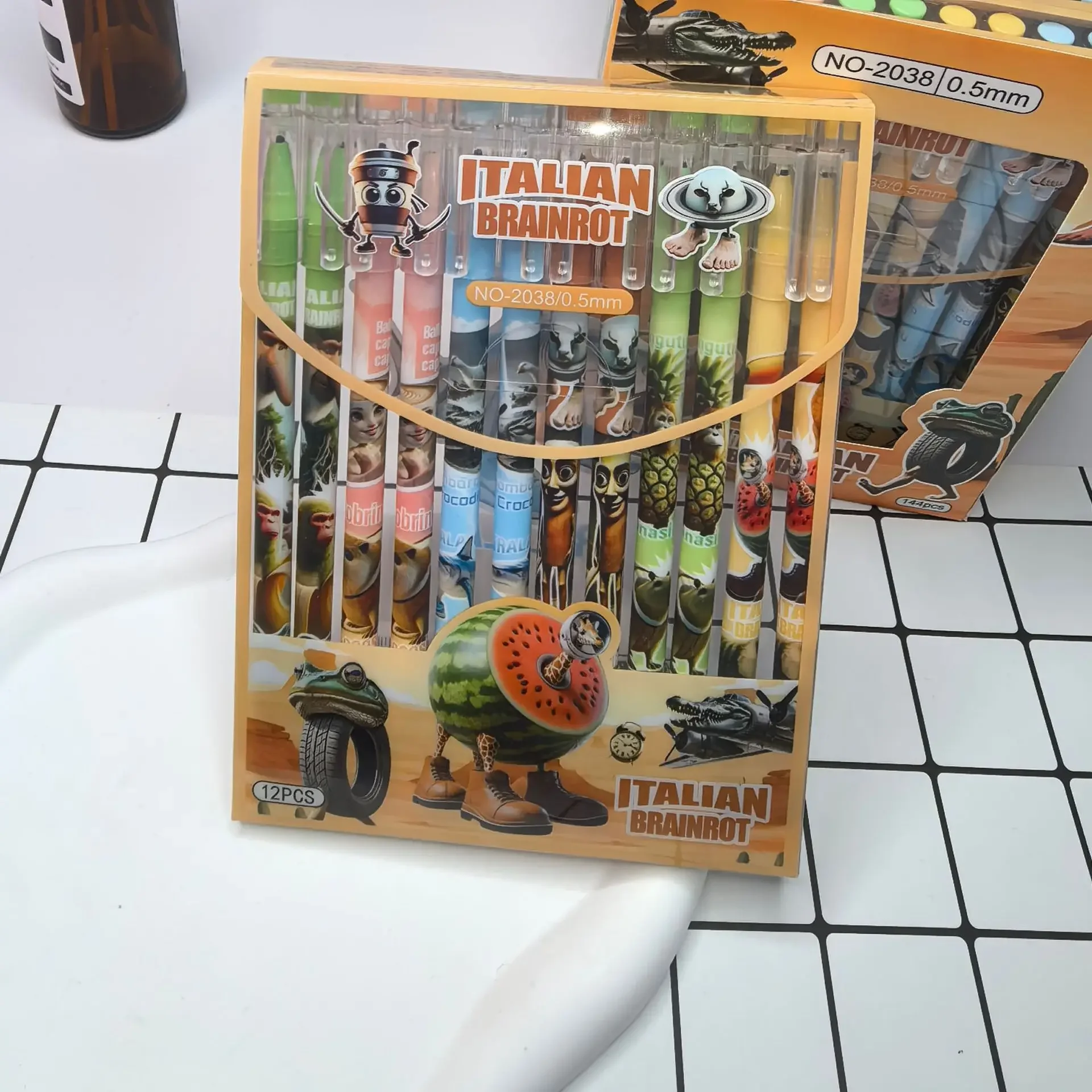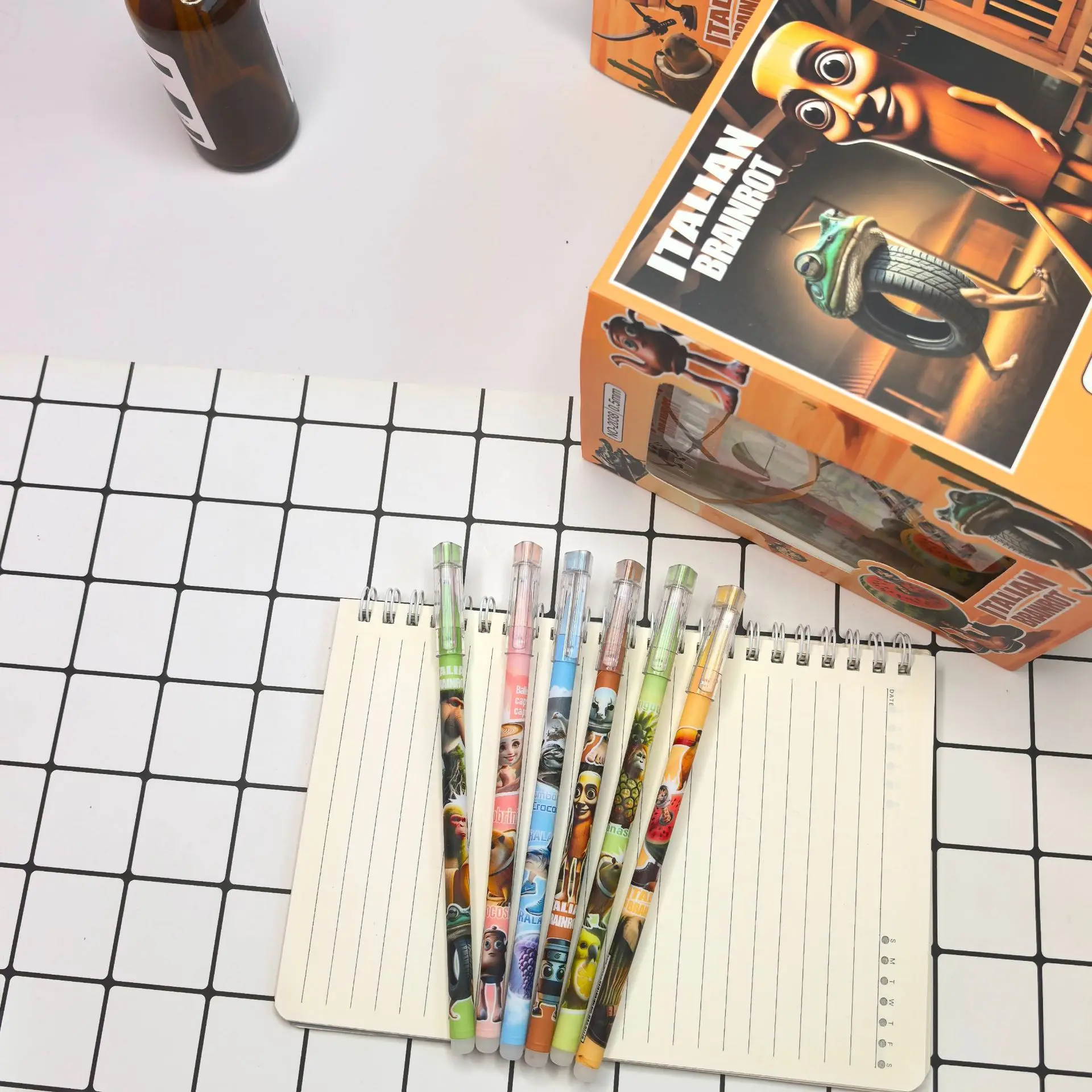 12PCS Italian Brainrot Tung Neutral Erasable Pen Cute Anime Gel Pens Kawaii Quickly-Drying Black Erasable Pens School Supplies