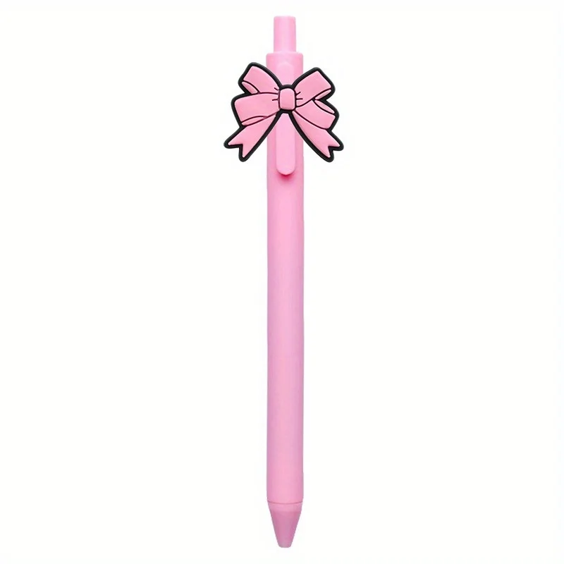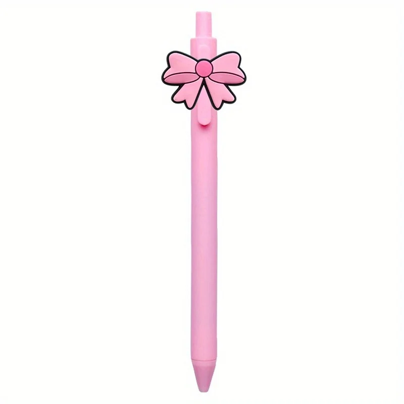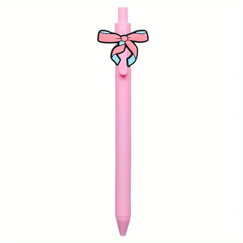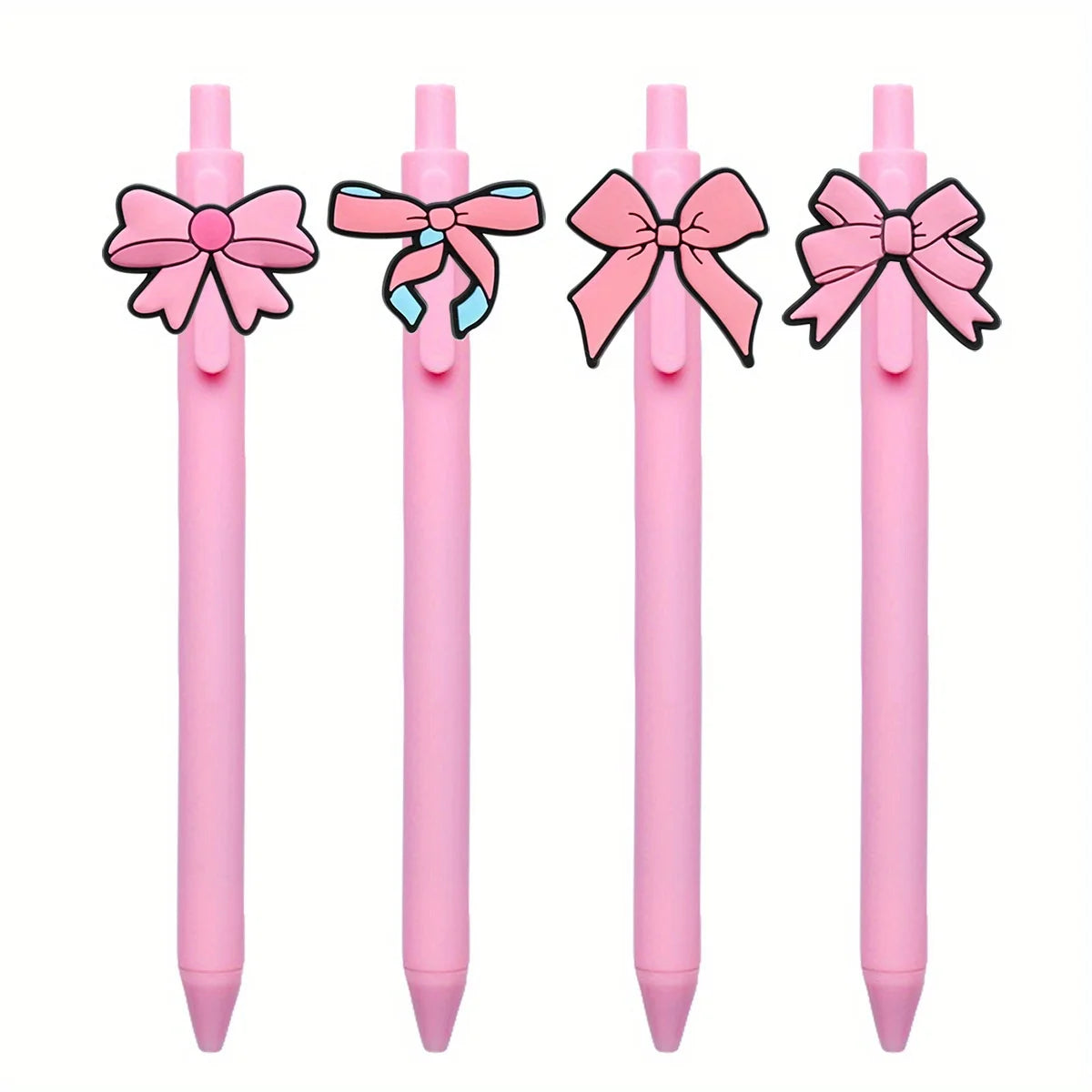 20pcs Lovely Pink Bow Series Retractable Gel Pens for Writing, PVC Soft Rubber Press Gel Pen with Black Refill, Nice Pens