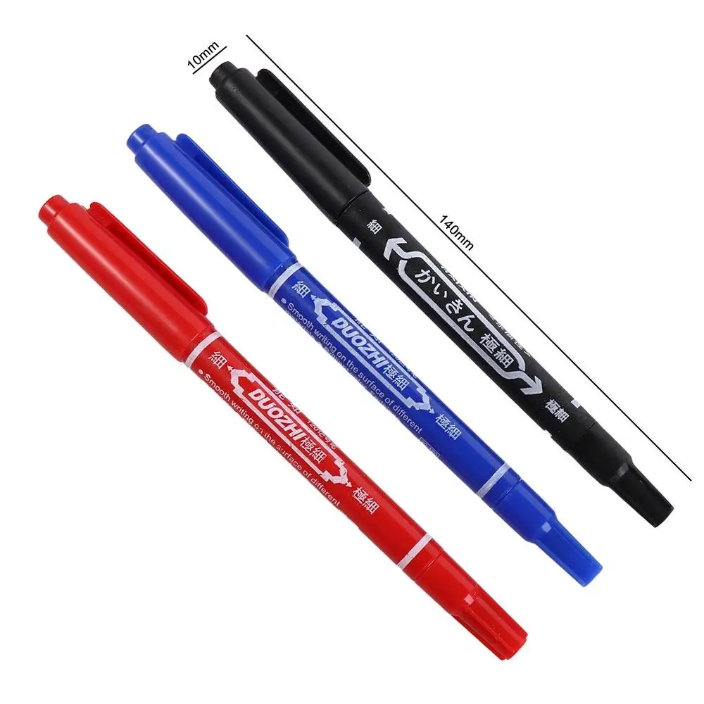 2Pcs/set Thin Pen Tip Tattoo Skin Marker Pen Waterproof Black/Red/Blue Ink Double Headed Marker Pen Large Capacity Stationery