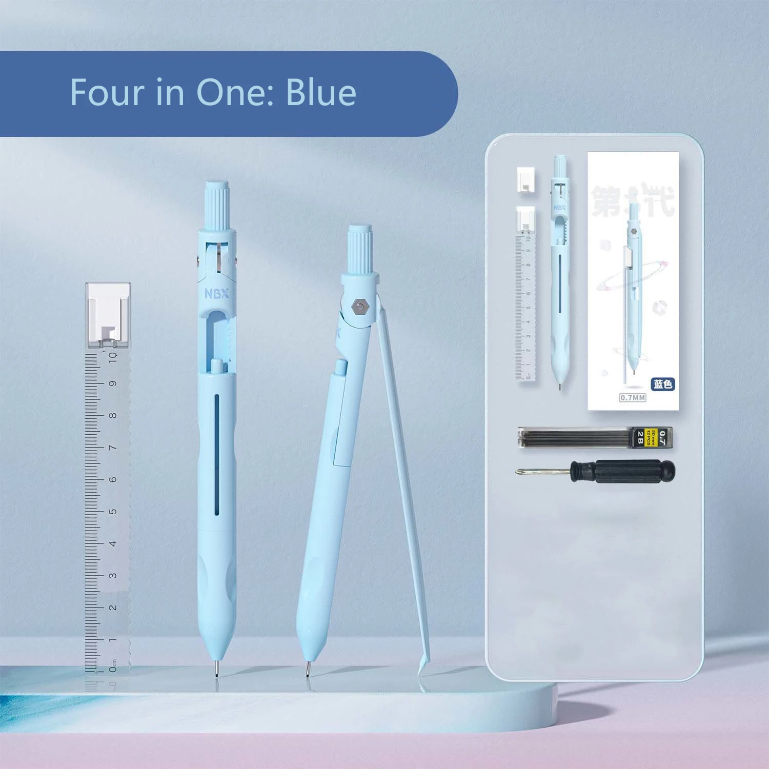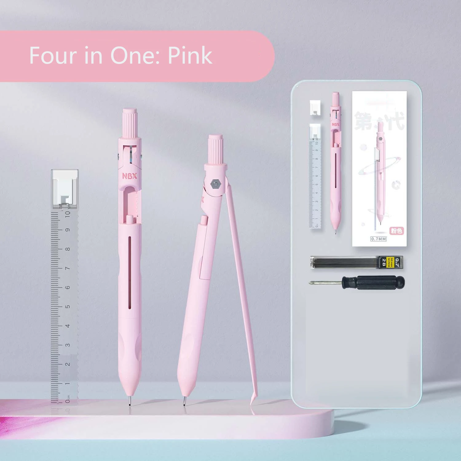 4-in-1 Multifunctional Metal Compass - Professional Geometry & Drafting Tool for Engineering Students, Architects & Math Classro