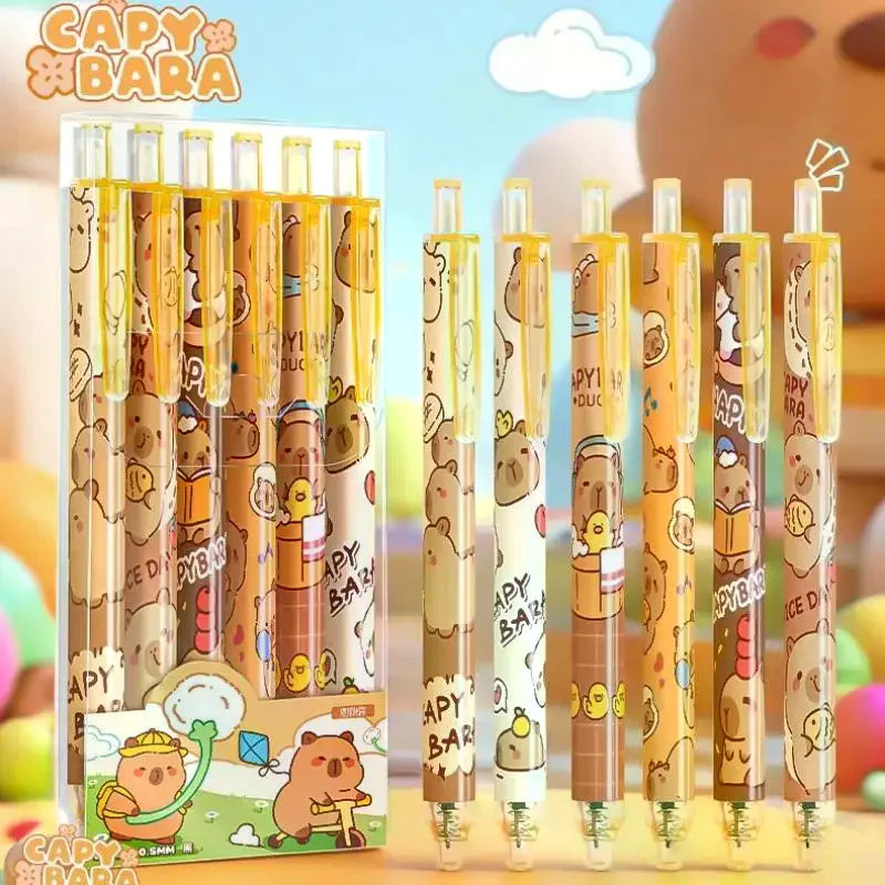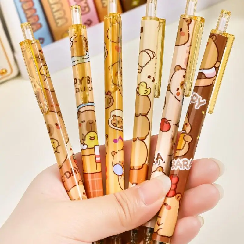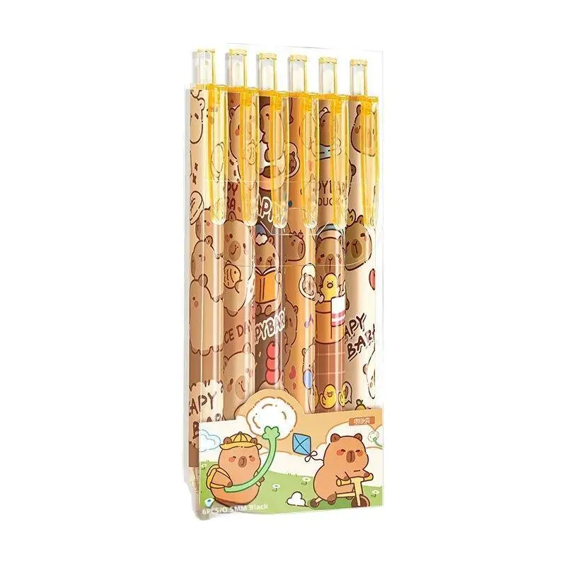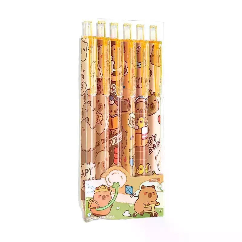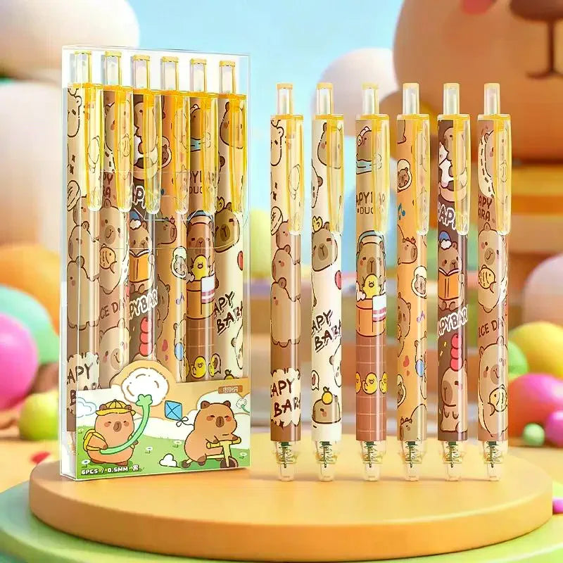 6Pcs Cartoon Cute Capybara Panda Gel Pens Kawaii Quick-Drying Writing Smooth Elegant Neutral Pens Student Stationery Gift