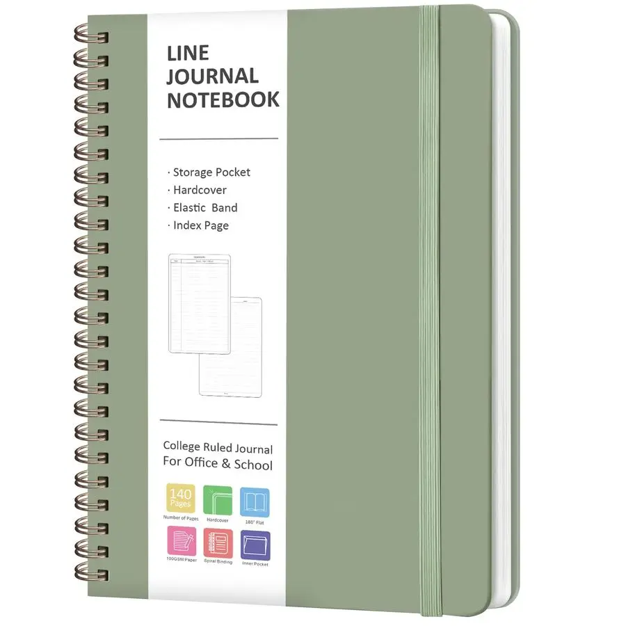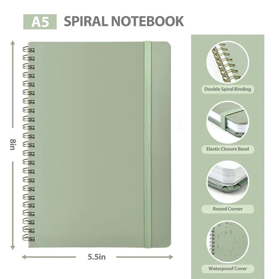 PREMIUM PAPER Our spiral notebooks feature 100 GSM thick FSCcertified woodbased paper, offering a smooth writing surface that prevents ink bleedthrough. Perfect for all pen types ballpoint, gel, and fountain pens each page includes a convenient date header for easy tracking. An ecoconscious choice that doesnt compromise on quality.