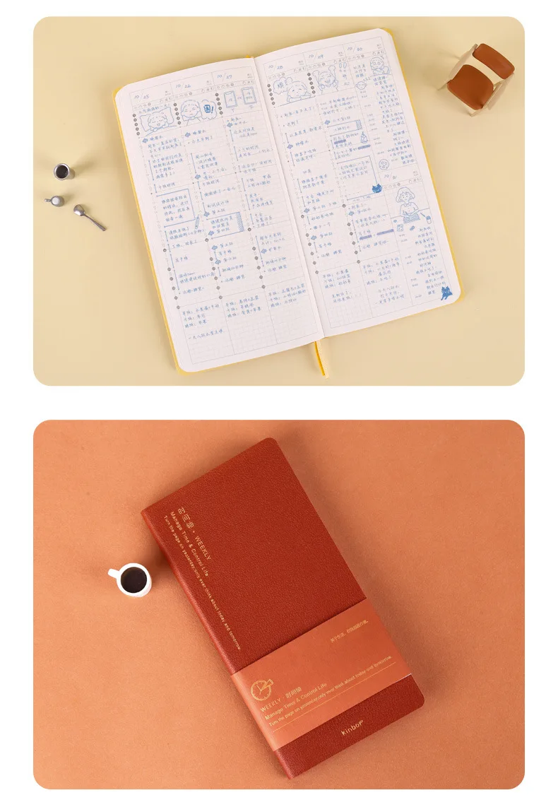 kinbor时间轴周计划week手帐本烫金皮面本随身记事本学生自律打卡