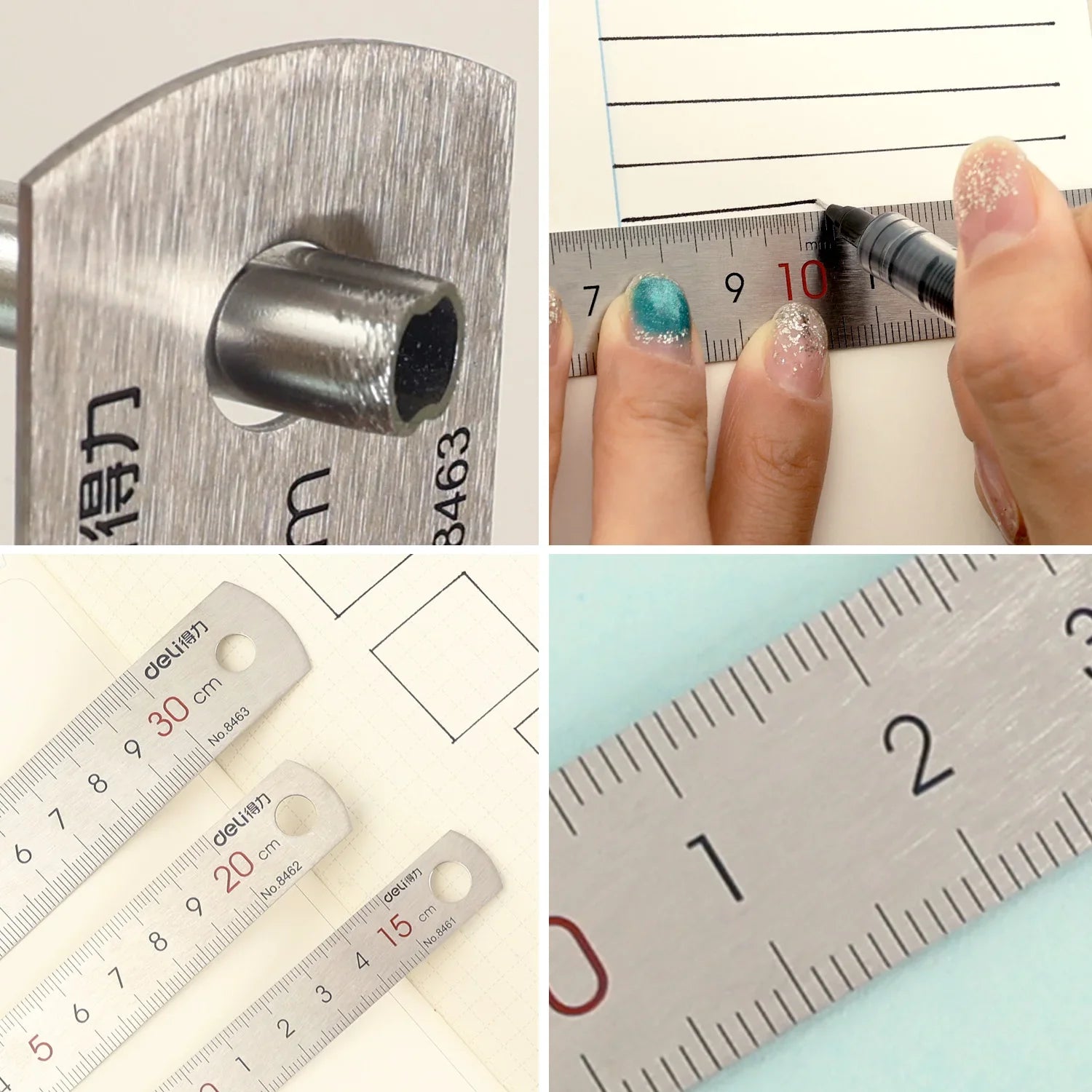 【CONVENIENT HOLE DESIGN】: Equipped with a hanging hole at the end, making it easy to store (hang on hooks) or carry (attach to bags/pencils cases) without losing the ruler.