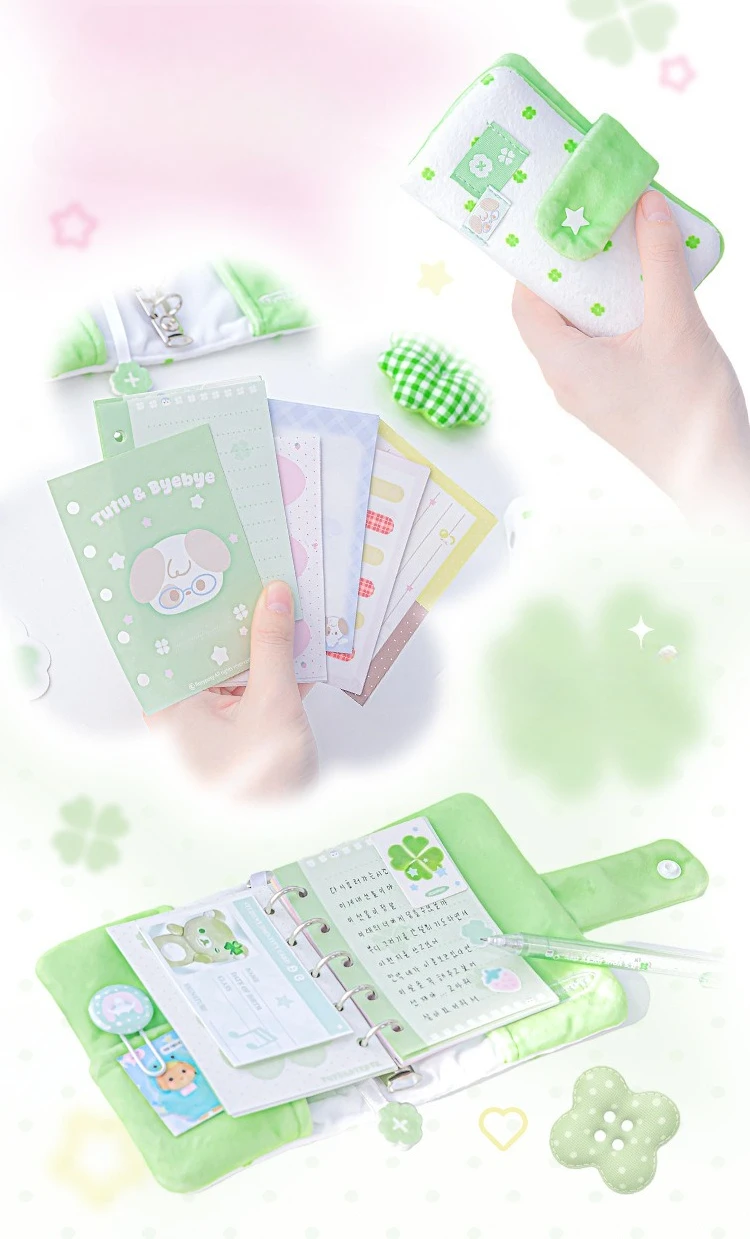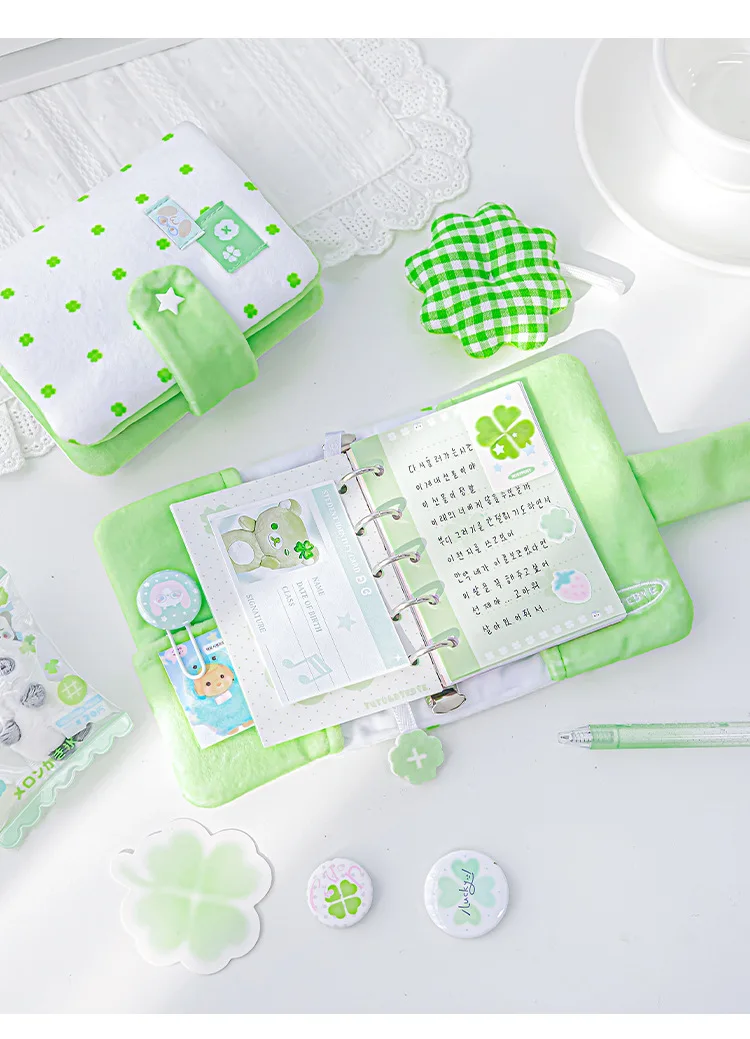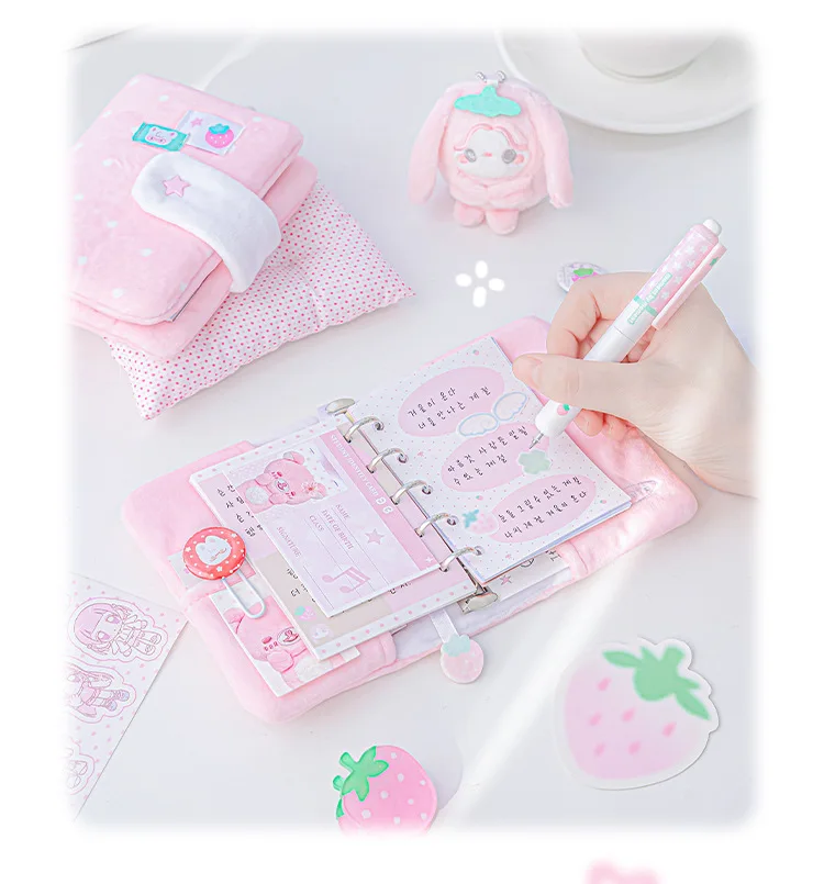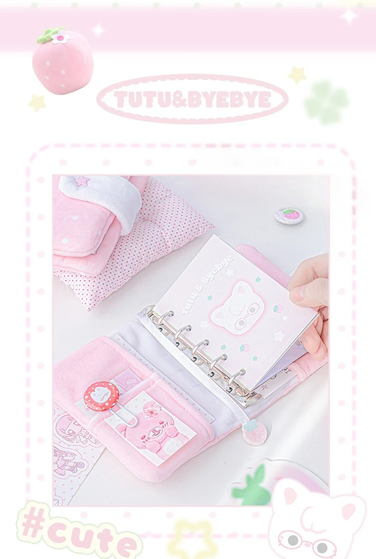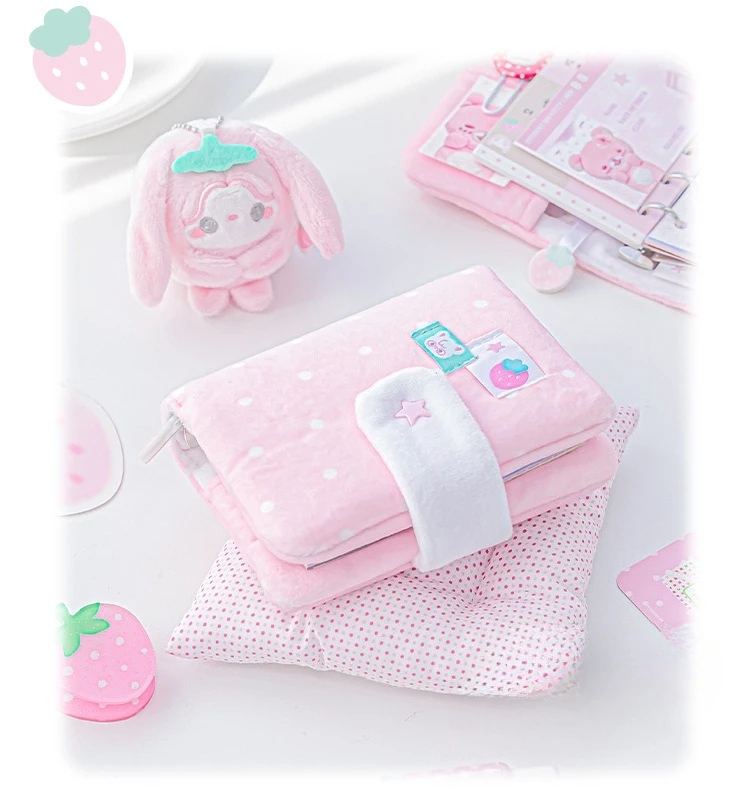 Polka Dot Plush M5 Ring Binder Aesthetic Notebook Cute Furry Scrapbook Journal Diary for Students Portable Planner Organizer