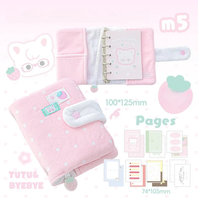 Polka Dot Plush M5 Ring Binder Aesthetic Notebook Cute Furry Scrapbook Journal Diary for Students Portable Planner Organizer
