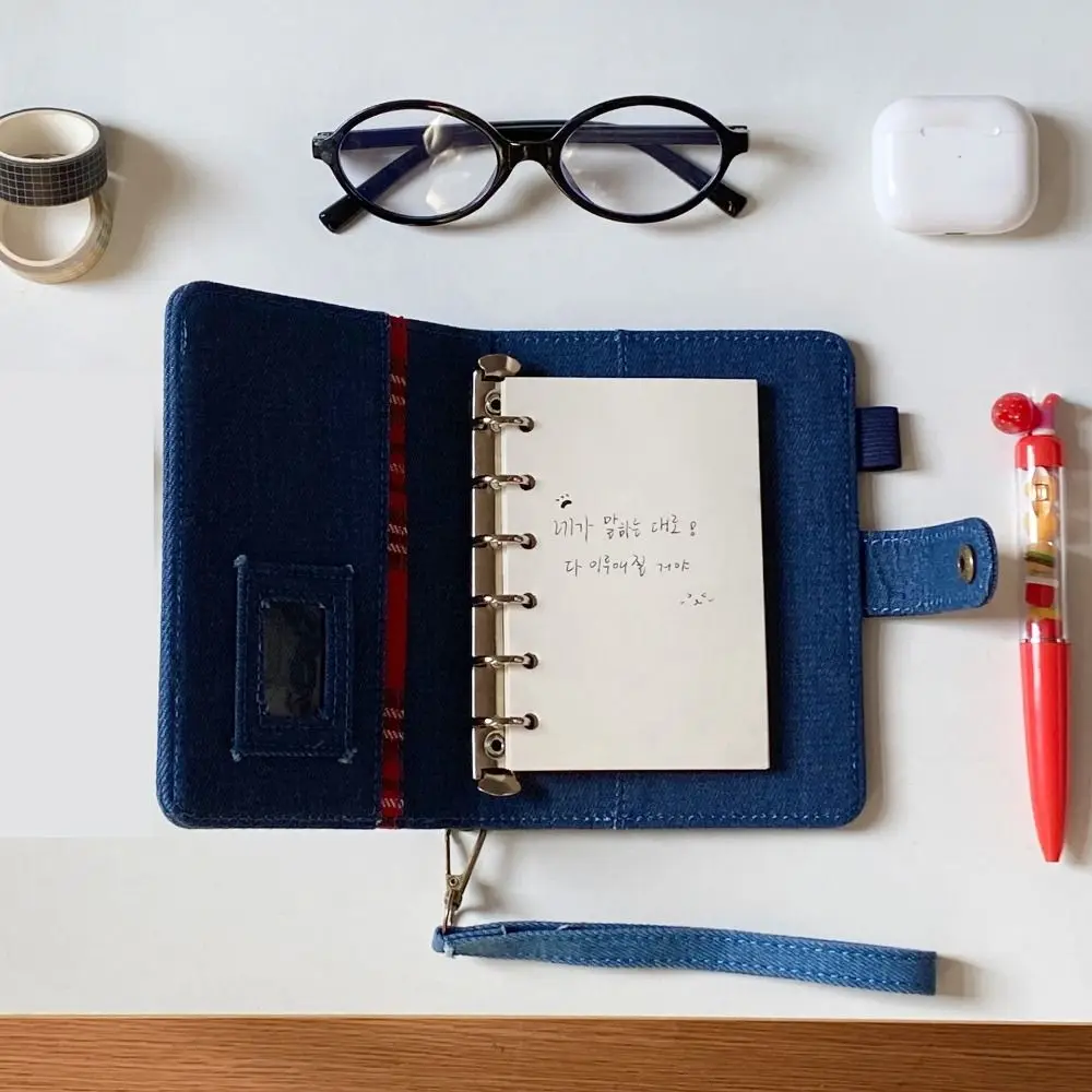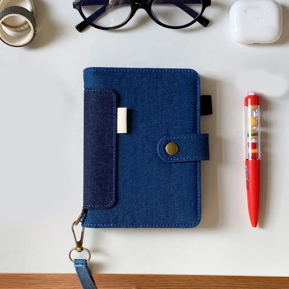 Portable A7 Retro Denim Notebook Refillable Thick Paper Binder Notebook Reusable Casing Loose Leaf Student Slabs Friend