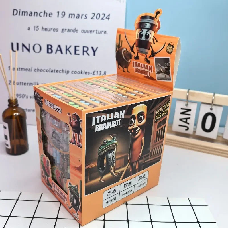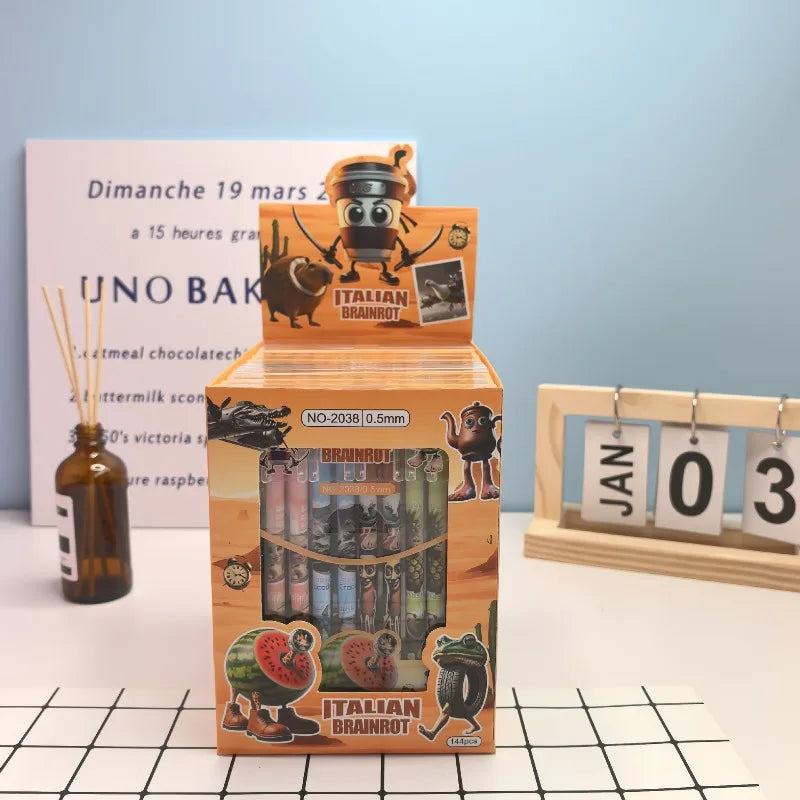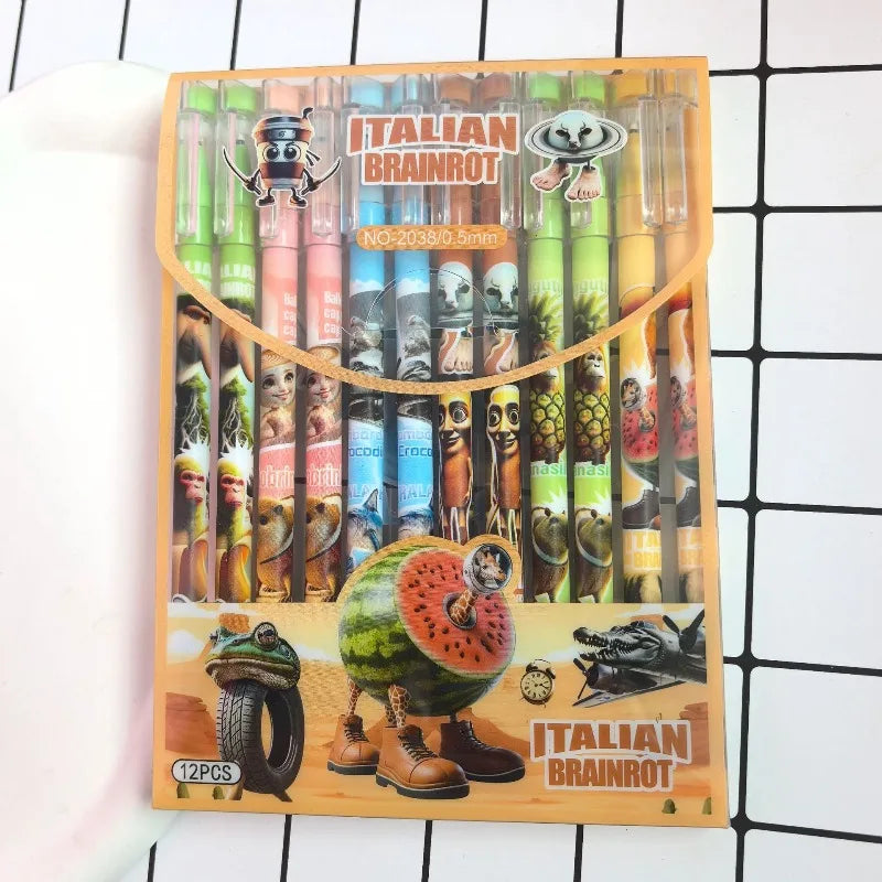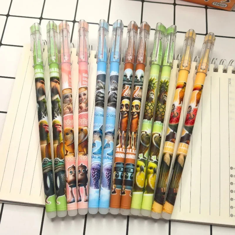 12PCS Italian Brainrot Tung Neutral Erasable Pen Cute Anime Gel Pens Kawaii Quickly-Drying Black Erasable Pens School Supplies