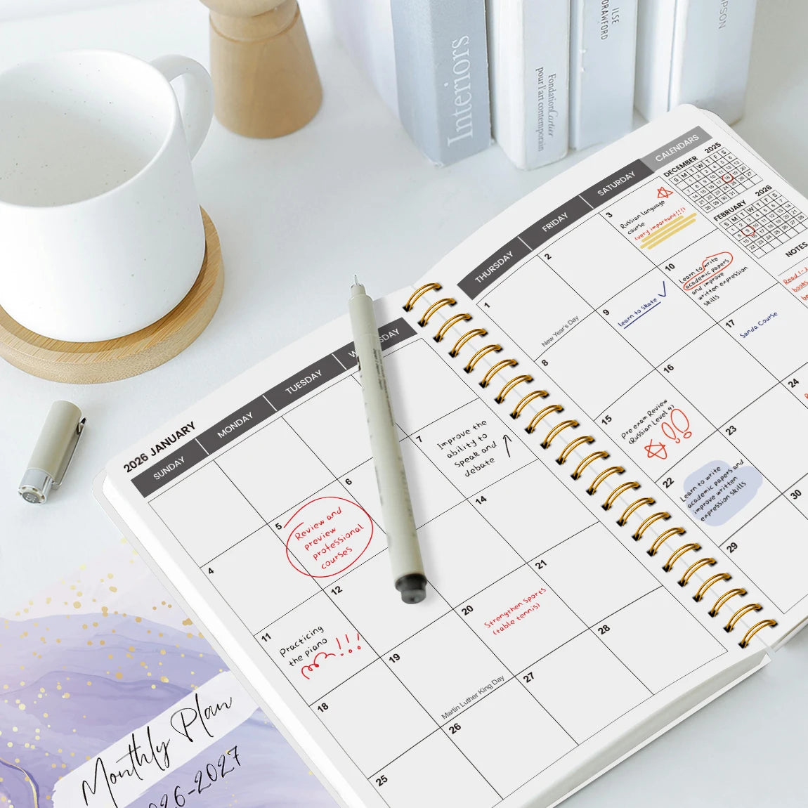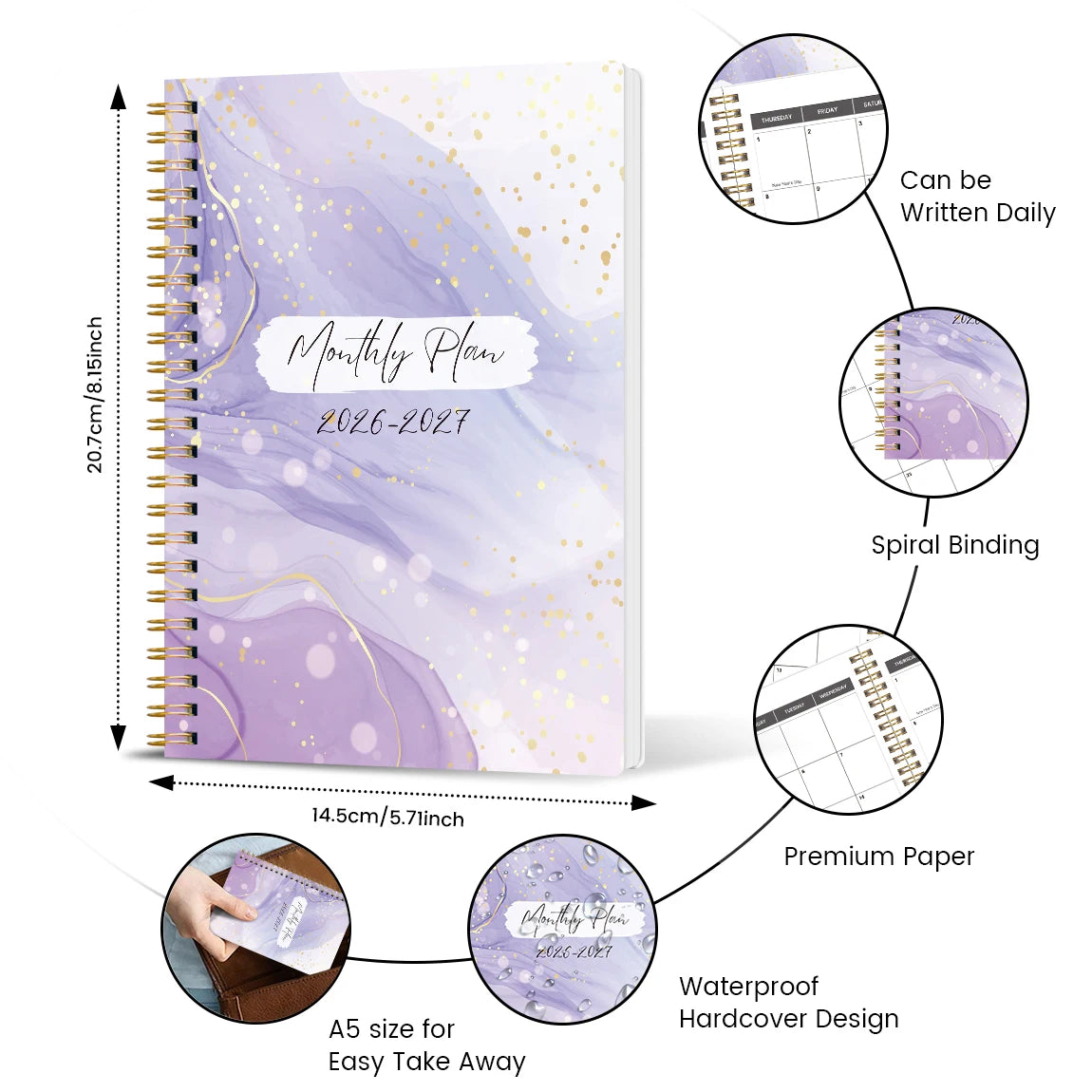 2026.1-2027.12, 2-Year Monthly Planner, Weekly Plan, Daily Notebook, Calendar Book, with A5 Size Pages, Office and Academic Book