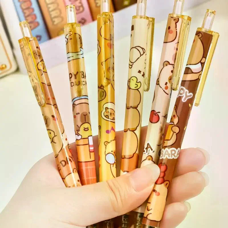 6Pcs Cartoon Cute Capybara Panda Gel Pens Kawaii Quick-Drying Writing Smooth Elegant Neutral Pens Student Stationery Gift