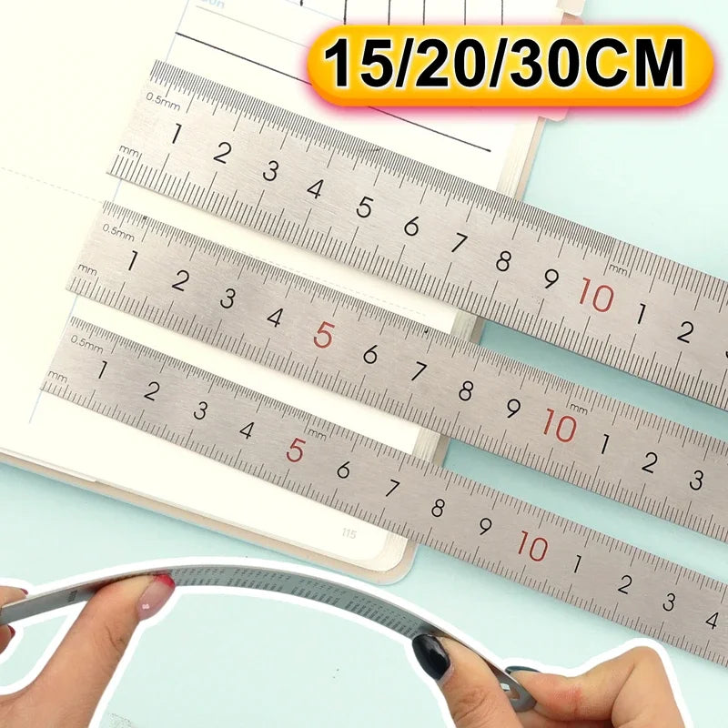 Metal Stainless Steel Ruler for Students And Woodworkers Straight Edge Measuring Tool for Students Drawing Drafting 15/20/30cm