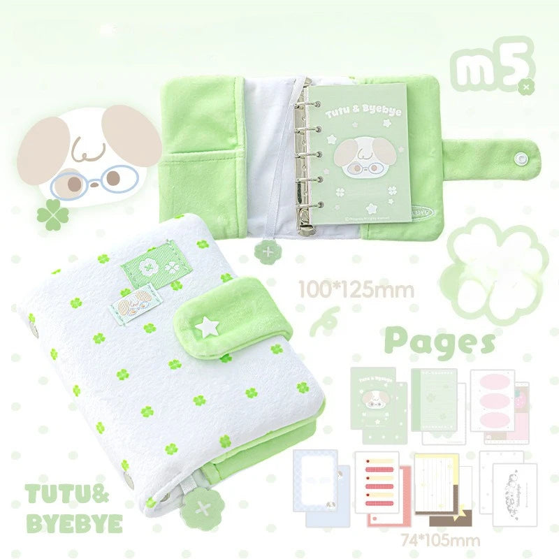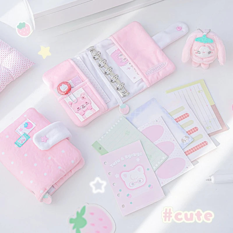 Polka Dot Plush M5 Ring Binder Aesthetic Notebook Cute Furry Scrapbook Journal Diary for Students Portable Planner Organizer